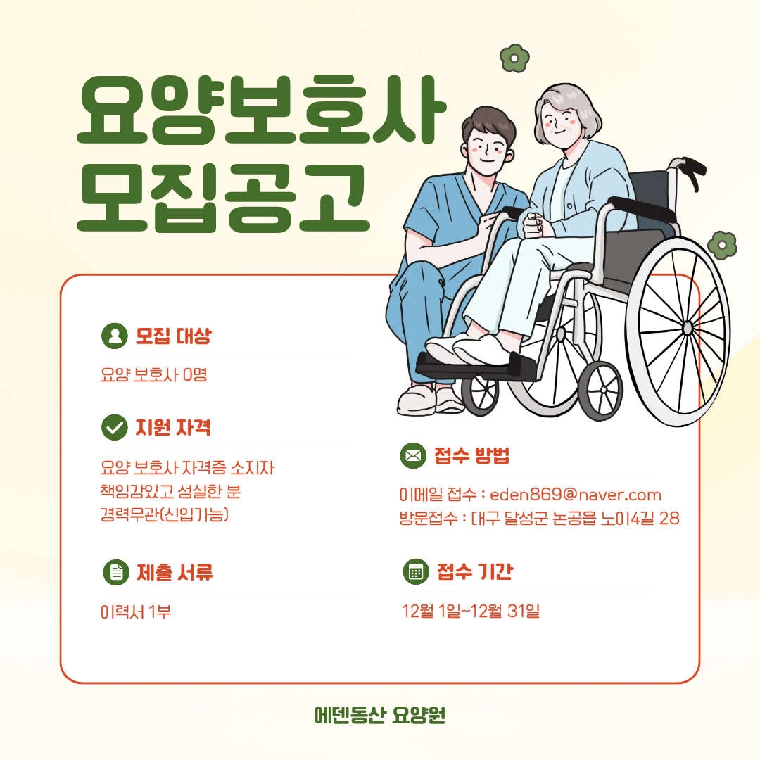 에덴동산 요양원 모집공고
