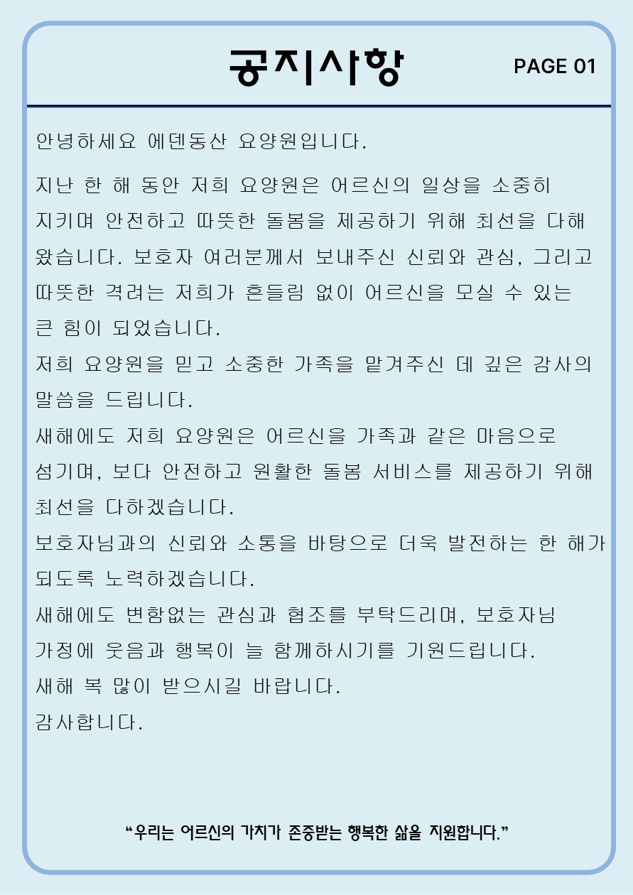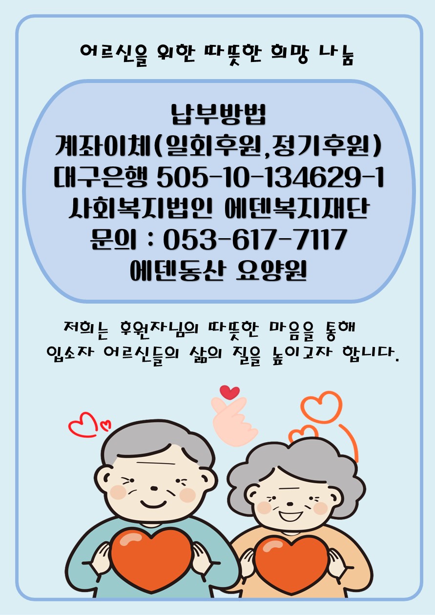 안녕하세요 에덴동산 요양원입니다.